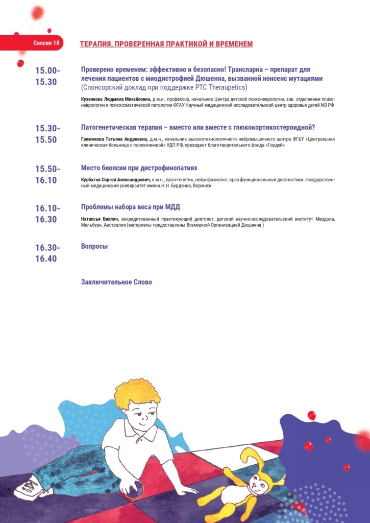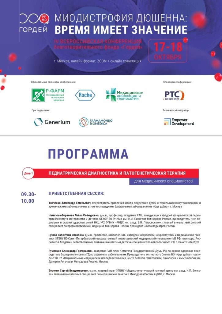 Четвертая всероссийская конференция с международным участием будет посвящена вопросам раннего наложения патогенетической терапии на стандарты терапии для обеспечения максимальной клинической эффективности терапии и вопросам ранней диагностики. Ранняя диагностика — это основа сохранения двигательных функций и предотвращения прогрессирования заболевания.