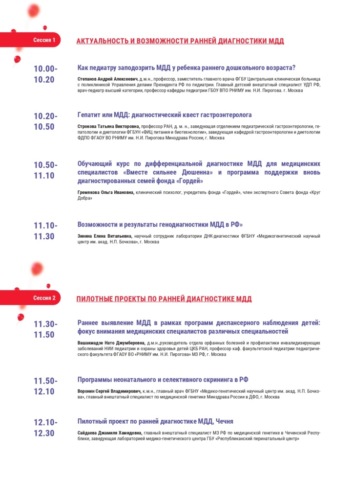 Целью конференции является информирование сообщества медицинских и помогающих специалистов и сообщества семей об изменениях и достижениях в областях ранней диагностики и комплексной терапии МДД.